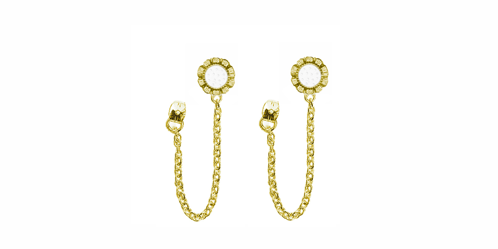 Elegante forgylte øredobber, med håndemaljert hvit, transparent glassemalje. En organisk ytterlinje med sølvperler som rammer inn emaljen til et stramt, elegant uttrykk.